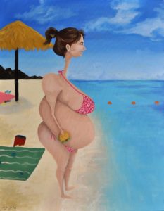 Ova mama je nešto kao žena – kesa. Ona na plažu stiže uvek posle deset jer niko od njenih članova porodice ne sarađuje za zajedničku korist. Dok vuče dvadeset torbi, kesa, kolica, dušeka i rashladnih frižidera, njena deca vuku jedva svoje noge, dok muž traži mesto za parking i njemu je najteže. Ona je ponela svu hranu koju je mogla da spakuje u njihov minijaturni auto, jer iako vrlo iskusno u novčaniku ima sitne evre za sve kukuruze, krofne i sladolede koje njena porodica može da pojede, ona zna da je njima svega uvek malo. Njena deca se kupaju po vasceli dan, nehajući za opasna zračenja i zaštitne kreme, bez šeširića i ostalih guma za spasavanje. Rozikaste boje kože koja se graniči sa opekotinama drugog stepena, često joj se gube iz vida dok se ona ogrnuta raznim maramama i peškirima, drekenja po plaži u nadi da će joj se dečurlija odazvati na njeno dvadesetominutno dozivanje da izađu iz vode. Ova mama prebraja urasle dlake koje joj vire iz kupaćeg kostima u predelu prepona, koji je po pravilu dva broja manji dok mašta o trajnoj epilaciji. Salo, strije i celulit joj se prelivaju na sve strane, prkoseći zgroženom plažnom auditorijumu koji joj nije ni do kolena. Ova poslednja rečenica je mantra koju ona sama sebi ponavlja, dok vadi knjigu koju nosi već tri letovanja, rešena da